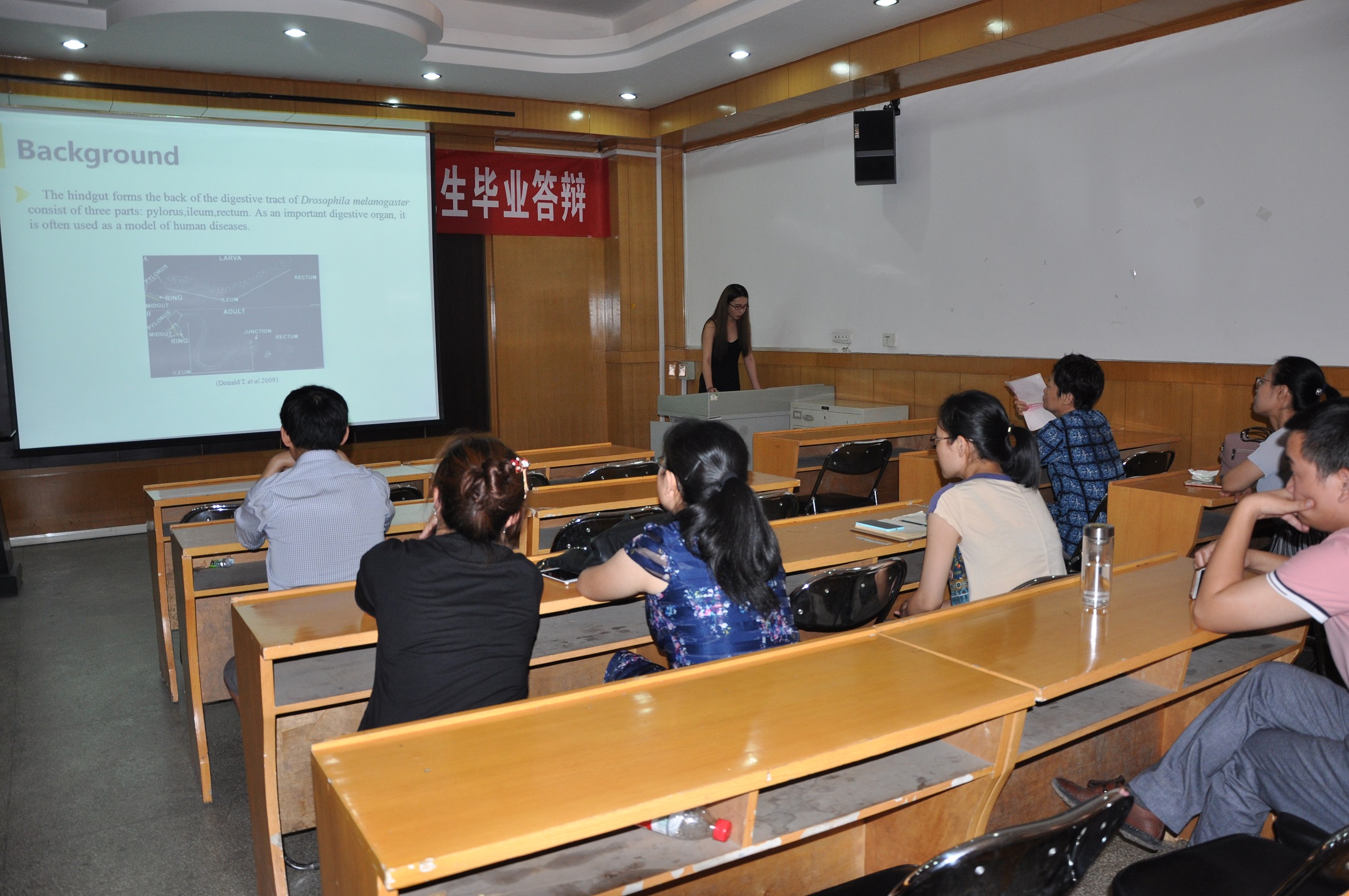接着,韩姣和张月同学 分别以《20-Hydroxyecdysone regulates C-type lectin mediated cellular immune response in Locusta migratoria》、《后肠器官的形成机制以及在后肠引起损伤可激活后肠中静默的干细胞》为题对各自近期的工作进行了总结报告。在座师生对两位同学的汇报进行了认真点评,并提出具体建议,对其今后的研究工作具有重要的指导意义,也对低年级同学起到了引导借鉴作用。
